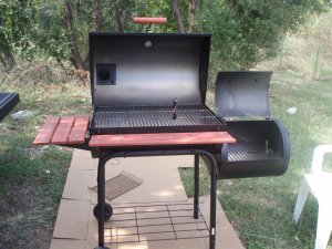 Well not anymore! Wifey shoved some bills in my hand, wrote a note and stapled it to my shirt and sent me to the market. I was to buy me a grill….with a smoker! Yippie!