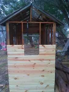 Ethan and I managed to get all the remaining wood off the playhouse (minus the roof) without damage to the remaining sub-structure. A major win since if it had been damaged it would require major rework. Basically taking the entire playhouse down and starting from scratch.